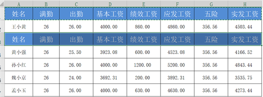 6、复制表头行,粘贴到新插入的第3行,如下图所示
