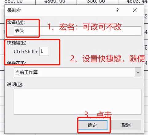 3、系统自动弹出“录制宏”对话框,如下图所示: