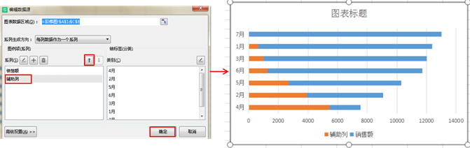选中图表,右键—选择数据,选中辅助列,单击向上移动的箭头。