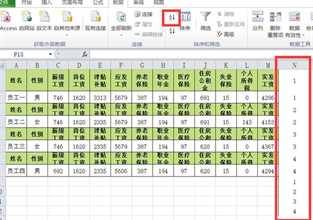 第一步:在辅助列中由小到大编号,每一个员工工资条表头和信息为同一个数字,编完后再在下面录入一遍以上数字。