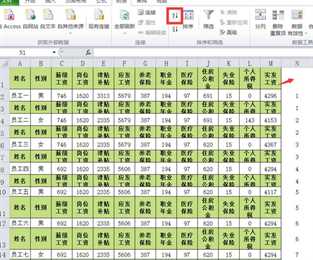 第二步:将鼠标放在辅助列最上面的单元格(N1),选择数据——升序排序(降序也可以),调整下边框格式,方便裁切的工资条就做好了。