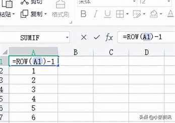 单元格中输入=ROW(A1)-1,然后按回车键。