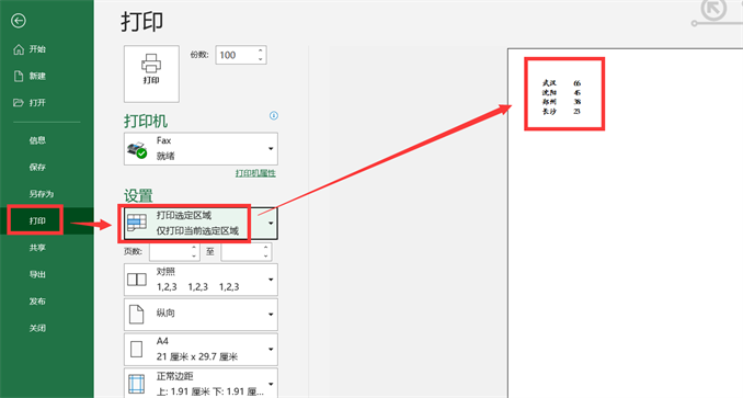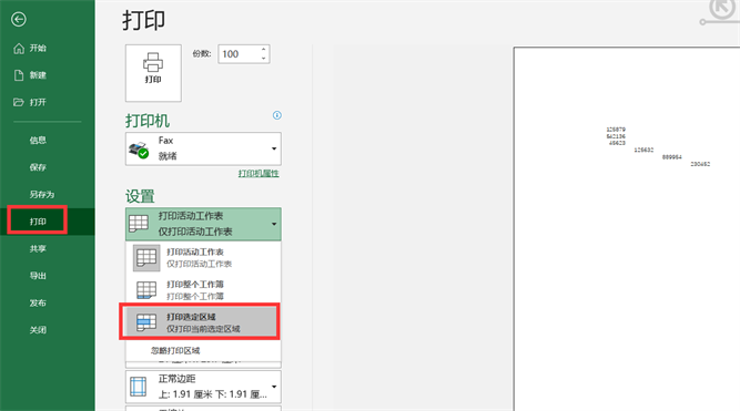 10、如果我们选择第三个选项—【打印选定区域】,那么就会直接打印我们选定的内容,如下图所示。
