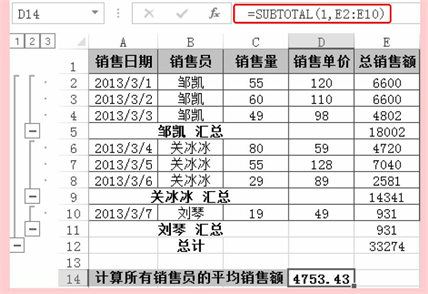 实例1 统计销售员的平均销售额