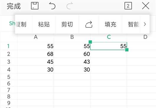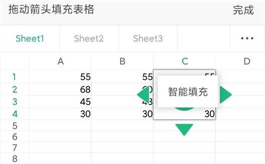 3.填充公示。点击刚填充公式的单元格,选择填充(或者智能填充)。