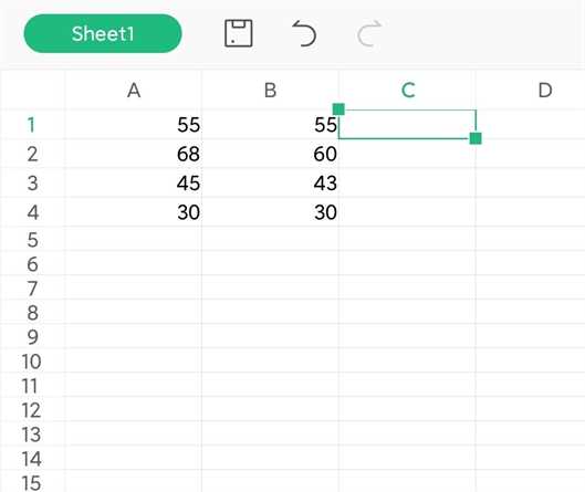 找到需要进行对比的a列和b列两列数据,在需要进行对比的两列数据后的c列,选择一个空白的单元格。