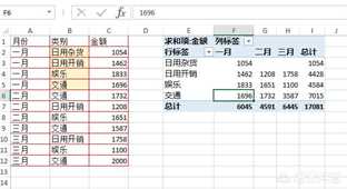 如图所示,要对表中家庭开支数据进行数据透视分析: