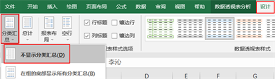 然后在设计里面选择分类汇总选项卡,选择不显示分类汇总。