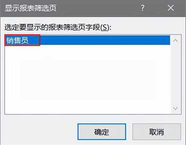 选定要显示的报表筛选页字段,比如这里选择的销售员字段是之前创建数据透视表时添加到筛选区域的字段。