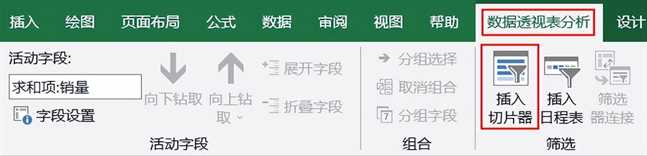 如果要看销售员每个月的销量和销售额情况,可以在数据透视表分析选项卡下插入切片器。