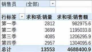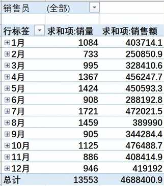 如下是所有销售员每个月的销量和销售额数据透视结果。