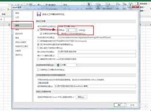 这样的话我们就进入了excel的选项设置阶段,点击保存,将保存回复的时间间隔设置为1分钟,这样的话每隔1分钟就会自动保存一份数据。