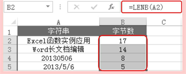 LENB函数用于返回文本字符串中用于代表字符的字节数。