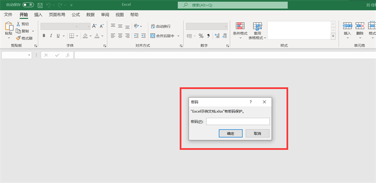 7、然后当我们想要再次打开这个Excel文档时,就会首先弹出如下图这样的一个【秘密】对话框,输入密码我们才能看到文档里的具体内容。