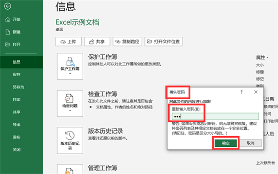 5、单击【确定】之后,会再弹出一个【确认密码】对话框,重新输入一遍你刚刚设置的密码,再次单击【确定】,如下图所示。