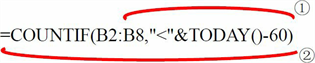 =COUNTIF(B2:B8,”<“&TODAY()-60)