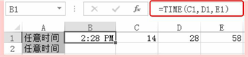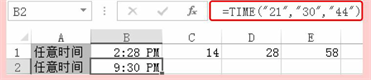 表格中显示了小时、分钟以及秒数,利用TIME函数可以将其组合成任意的时间。