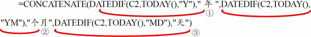 ③ C2单元格日期与当前日期相差的天数(忽略年数与月数)。
