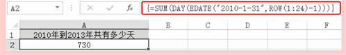 要计算出2010年到2013年共有多少天,可以使用EDATE函数配合其他几个函数来实现。