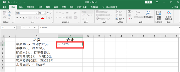 首先,我们在合计单元格中输入“a10 20”(a这个字符你可以随便换,可以是b,c,d等等,一会我们替换)。