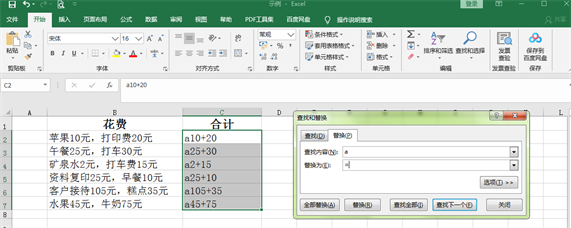 选中数据,按Ctrl F,将“a”替换成“=”,点击“全部替换”。