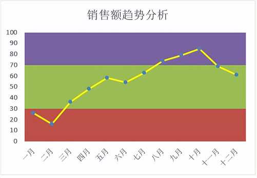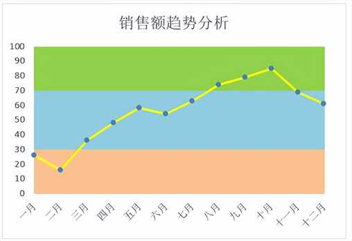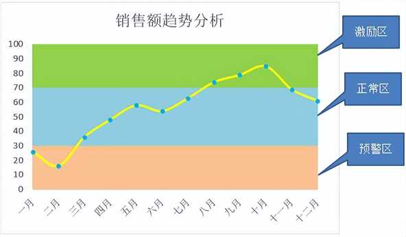 在此基础上,如果要添加不同颜色带表示预警区、正常区、激励区,如何实现呢?
