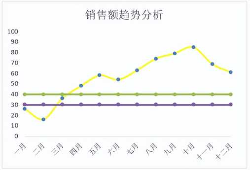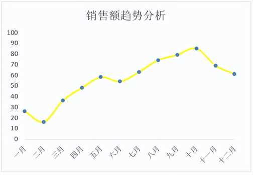 最佳答案以下是按月份销售额数据:制作常规的按月销售额趋势图如下:选中A1:B13,点击“插入”-》插入折线图-》带数据标记的折线图生成的趋势图如下:在横坐标区点击鼠标右键菜单“设置坐标轴格式(F)…”,设置如下:在纵坐标区点击鼠标右键菜单“设置坐标轴格式(F)…”,设置如下:在刚生成......