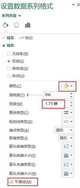 在刚生成的蓝色趋势线上点击鼠标右键菜单“设置数据系列格式(F)…”,设置如下: