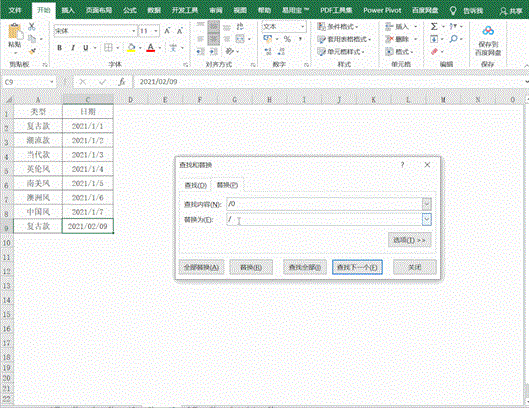 我们发现日期:2021/02/09不标准,我们可以使用替换来修正。