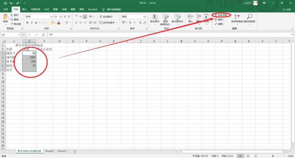 2.先求和,选中需要求和的单元格和一个空白的单元格,点击【自动求和】。