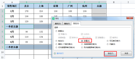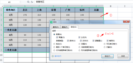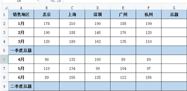 如下图所示,计算每个季度的总额和每个月的总额,这时候就要用到第二种方法了。