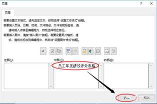 3、弹出“页眉”对话框 — 在“中部”下方的文本框中输入页眉信息 — 点击“确定”按钮。