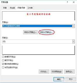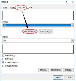 2、弹出“页面设置”对话框 –切换到“页眉和页脚”选项卡 — 点击“自定义页眉”按钮。