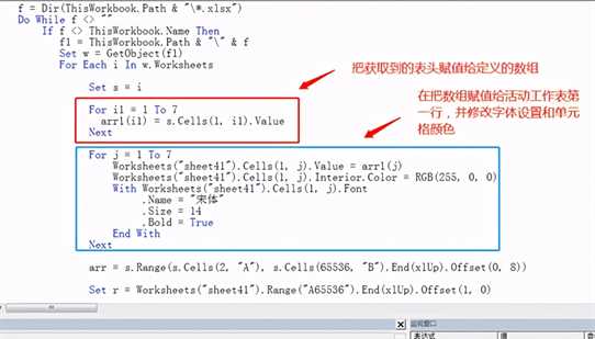 最后我再说一下,我上面为什么用i定义工作表不直接使用s,一步到位不太好看出从工作簿中取工作表,所以我就没有省去。如果感觉多余可以想下面一样,一步到位。其中上面取表头也是可以省略的,主要是想让大家多看一些代码,才添加的。