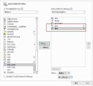 将撤销和重做的命令添加以后,直接点击确定,这时快速访问工具栏就会显示出快捷键图标。