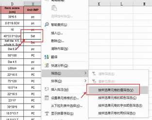 然后再试一下“按所选单元格的值筛选”。