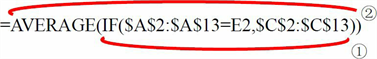 =AVERAGE(IF($A$2:$A$13=E2,$C$2:$C$13))