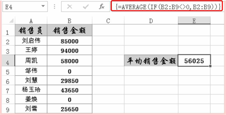 实例2 忽略0值求出平均销售额