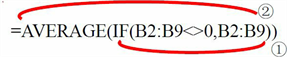 =AVERAGE(IF(B2:B9<>0,B2:B9))