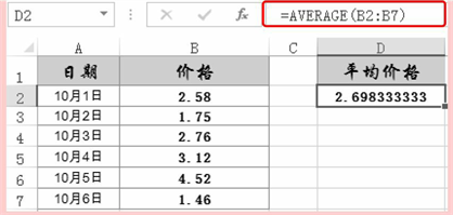 按“Enter”键即可得出平均价格,如图1所示。