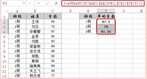 按“Shift+Ctrl+Enter”组合键即可统计出“1班”的平均分数。
