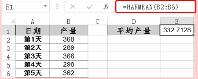 对B2:B6单元格区域中的集合数据求出调和平均值。