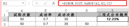 BINOM.DIST.RANGE函数使用二项式分布返回试验结果的概率。