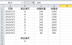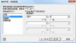 在“筛选数据”对话框中,选中“商品编号”,在右侧下拉框中选择“等于”和“A”(可任意选择一个),再点击“下一步”。