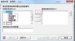 将相关字段移至右侧,后点击“下一步”,这里要注意:若左侧空白,则点击“选项”,勾选“系统表”即可。