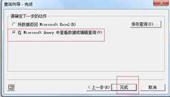 在“完成”对话框中,点击“在Microsoft Query中…..”,后点击“完成”。