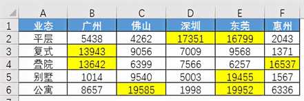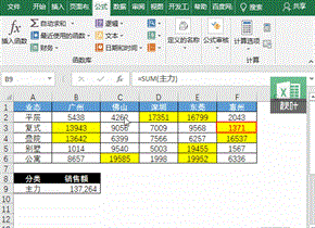 例如在一张销售业绩表中,标黄单元格是各城市公司主力业态的销售额,如何才能快速对这些单元格及进行求和呢?