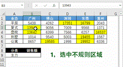 并且,结合「快速跳转」,在快速选中不规则区域的基础上,还能对不规则区域进行求和;