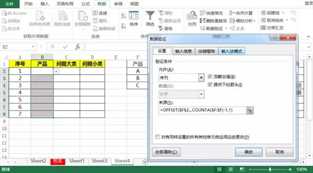 第四步:选择问题小类区域D2:D8,点击数据—数据验证,允许条件选择序列,来源输入:=INDIRECT($C2),点击确定。如下图所示: