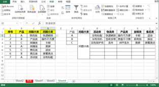 第二步:选择问题大类的C列C2:C8单元格区域,点击数据—数据验证,允许条件选择序列,来源输入:=$H$1:$L$1。也就是添加问题大类的类别。如下图所示: